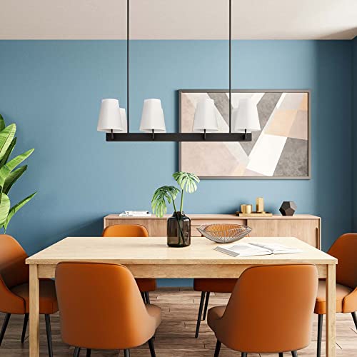 The Enthrall 8-Light Chandelier brings modern grandeur to a living room, dining room, entryway, bedroom, or office. This linear pendant light features two rows of fabric cone shades covering eight lightbulbs that require E26 bulbs 60W maximum or LED equivalent (not included). Compatible with sloped ceilings, Enthrall has a rectangular ceiling canopy with swivel adaptors and features two five-piece, height-adjustable hanging rods to suit a range of ceiling heights. ETL Listed for Damp Locations. Luminaires that are "Suitable for Damp Locations" are approved for areas that are regularly exposed to moisture and condensation. Professional installation required.