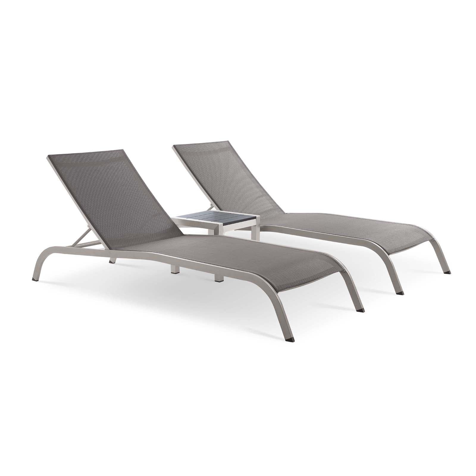 Modway Savannah 3 Piece Mesh Patio Lounge Chair Set in Gray