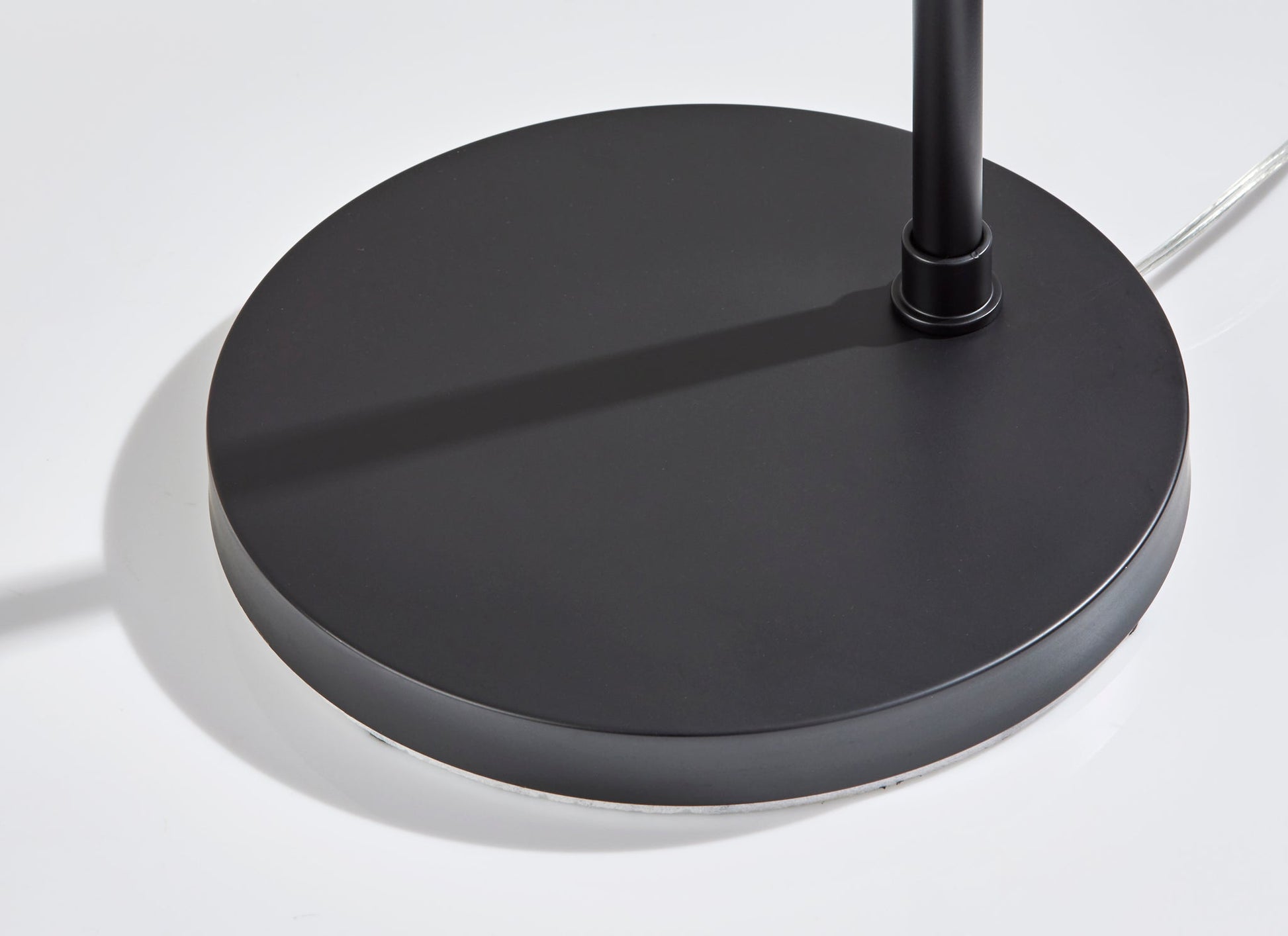Add warmth and timeless style to your space with the Nolan arc floor lamp. The arcing design of this floor lamp makes it the perfect light source for reading in a recliner or working at a desk, while its slender metal pole and low-profile base make it easy to position near love seats, couches, armchairs, or side tables. A round 13.75" diameter base crafted of black metal supports a pole and slender, gracefully arcing arm. Suspended from the arm is a stunning glass globe with an eye-catching beige swirl pattern that throws warm light from a 60W bulb. For versatile lighting options, an articulation point at the base of the glass globe allows you adjust the shade, directing the light wherever it's needed. With a black rotary switch located on the pole, it is easy to turn the lamp on or off. Complete your décor with the coordinating Nolan floor lamp, desk lamp, wall lamp, flush-mount ceiling light, and pendant light.