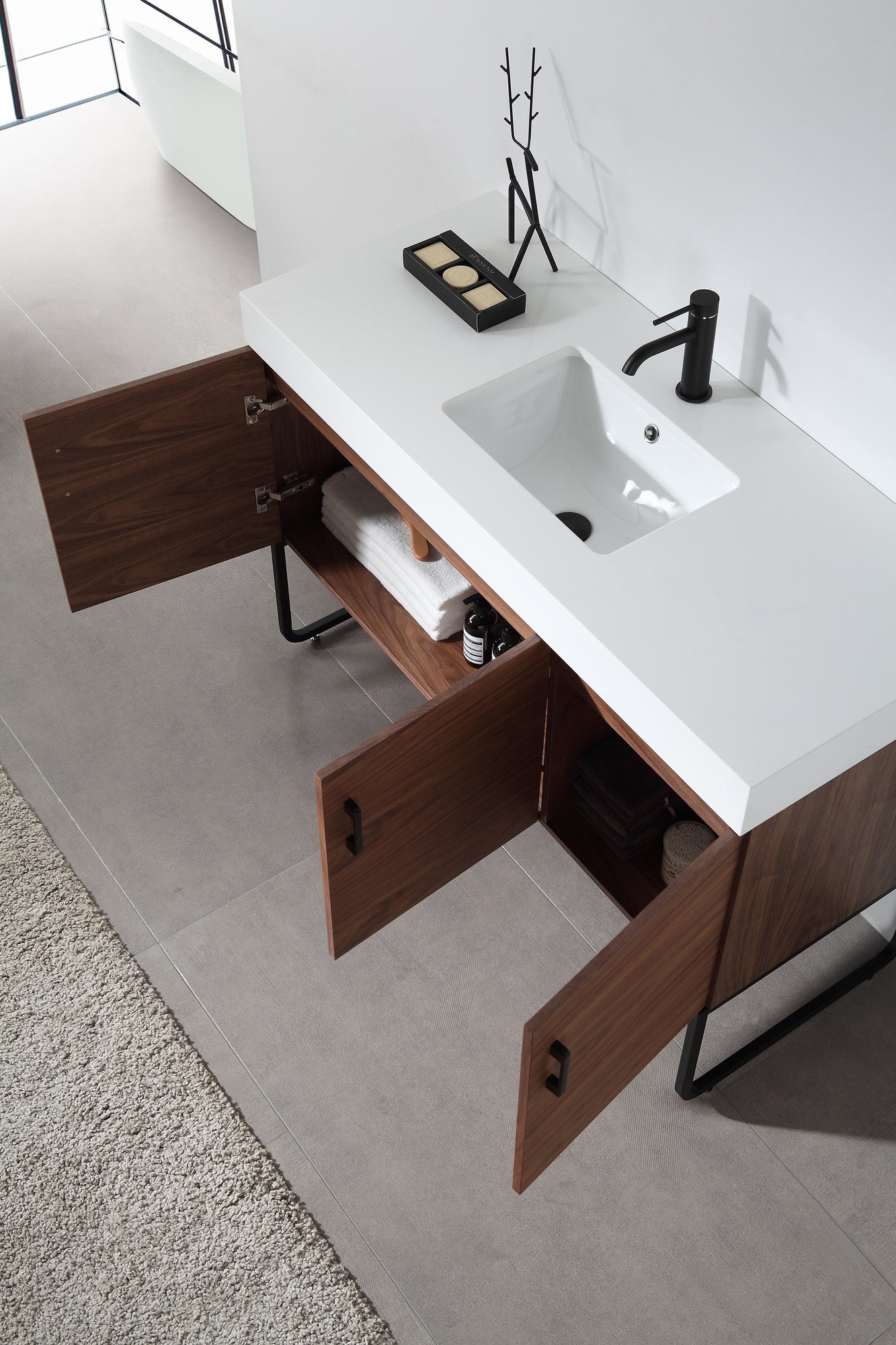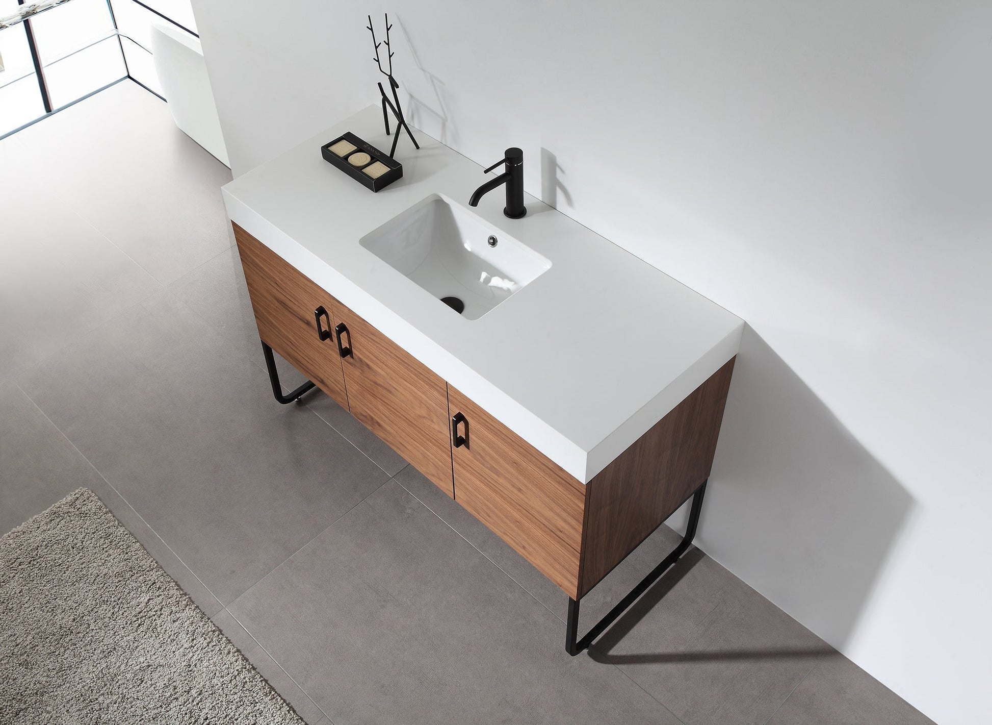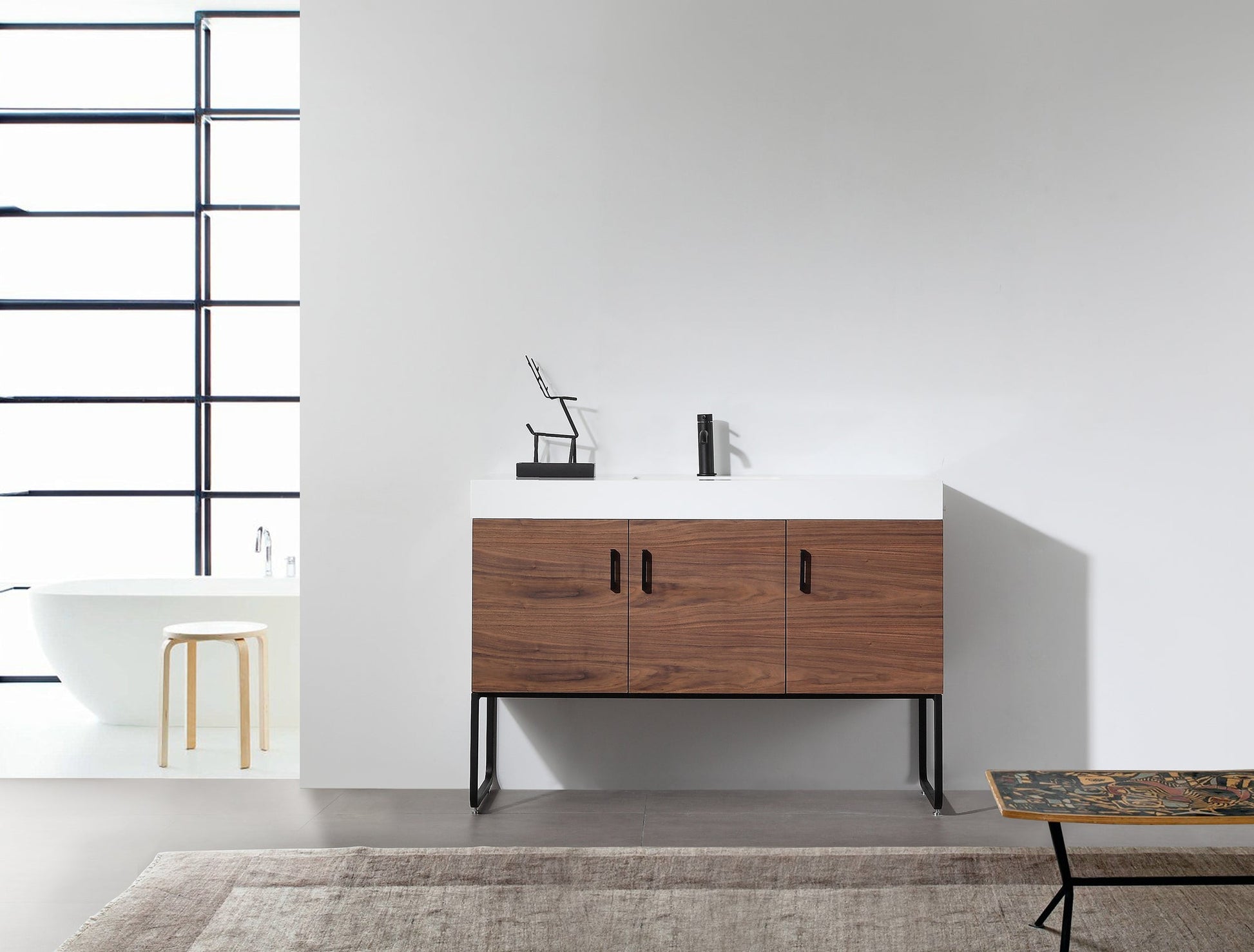 VEEMON 48” WALNUT DUAL MOUNT MODERN BATHROOM VANITY